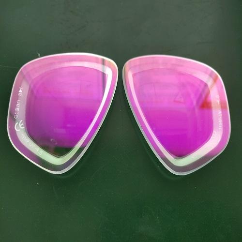 Tempered glass diving goggles do not simply cut glass, but have a specialized heat treatment process: · Cutting and edging: Cut the float glass raw sheet into the shape of a lens and finely polish the edges to prevent scratching the silicone skirt. ·Hot bending molding: Place the cut glass into a high-temperature mold, soften it, and use gravity or pressure to bend it into a spherical or cylindrical curvature that fits the face. ·Physical Tempering: Quickly heat the glass after hot bending to 650-700 ° C, and then cool it uniformly and rapidly with high-speed airflow. This process forms a permanent compressive stress layer on the surface of the glass, increasing its impact strength by 5-10 times compared to ordinary glass. ·Splicing and sealing: Two pieces of tempered glass are sandwiched with a specially made transparent film (such as PVB film) and sent to an autoclave for vacuuming and high-temperature high-pressure bonding. If a rupture occurs, the fragments will firmly adhere to the film, which is also the core of "safety glass".